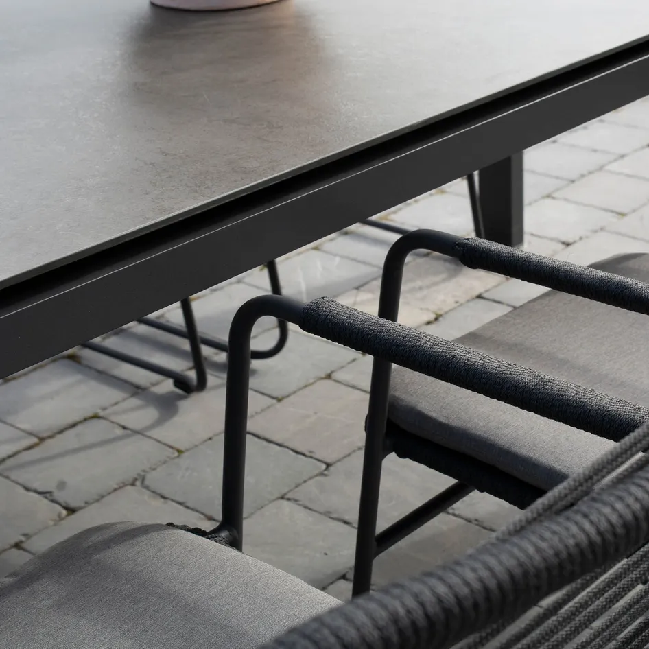 - Sustainability is very important to us, so we use responsible materials that are not only weather resistant but also come from certified sources and suppliers. For example, the HPL from our tables is made in Germany and our teak tables are made from a certified plantation teak. Because of these durable materials, a 4 Seasons Outdoor table lasts much longer, and we give at least 5 years of warranty on construction and manufacturing defects. Due to timeless design and functional design, our garden dining tables are a feast for the eyes.